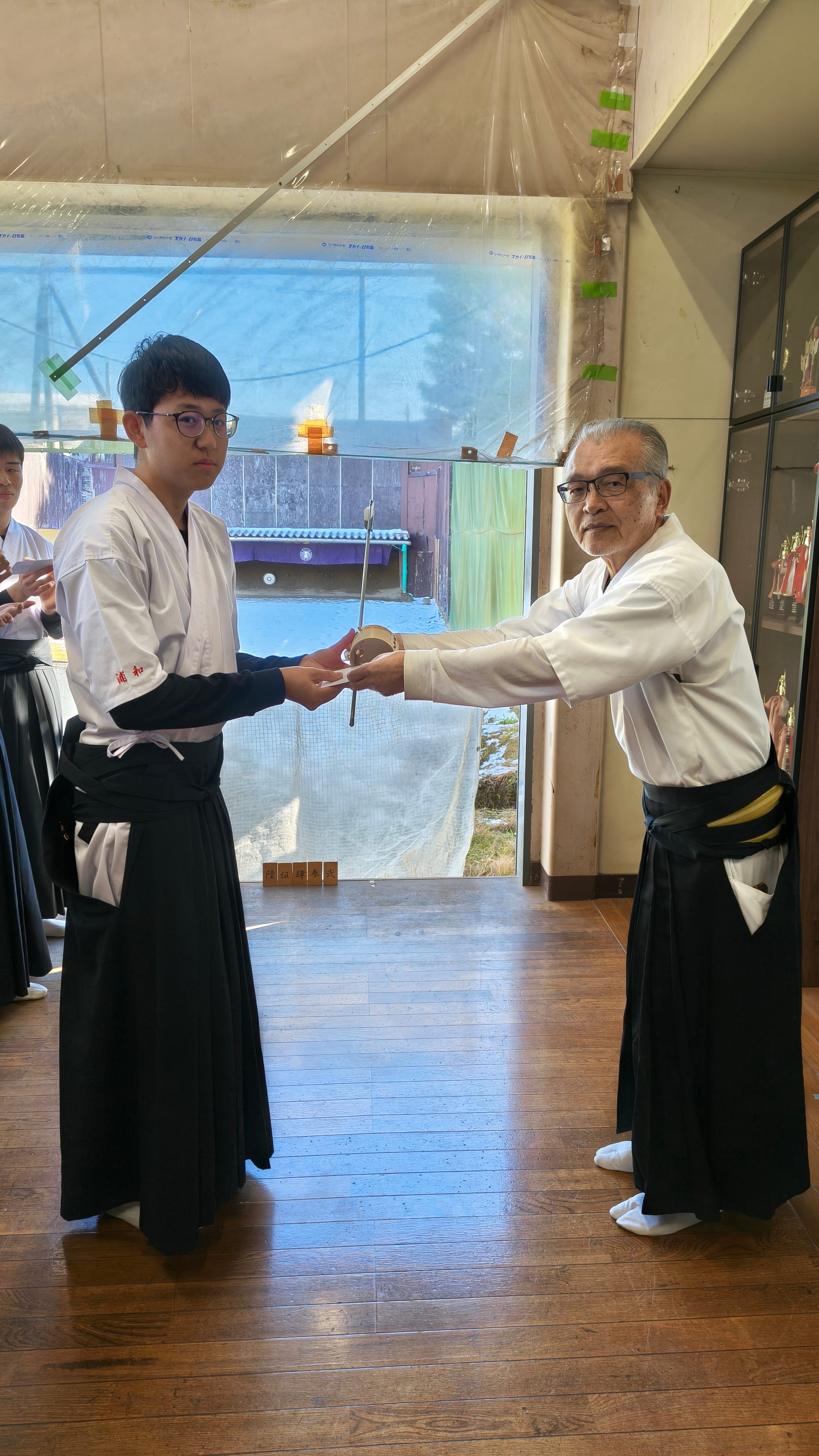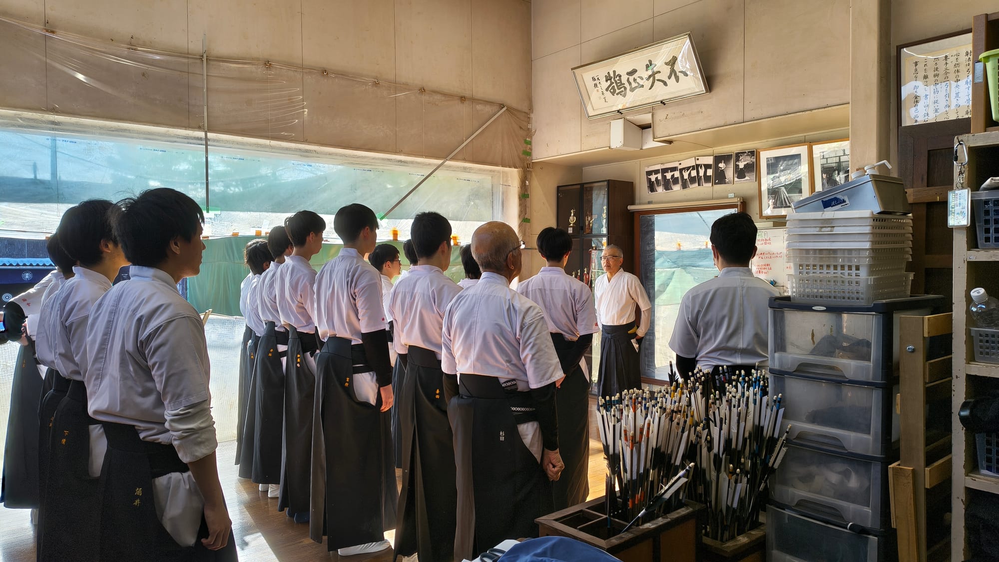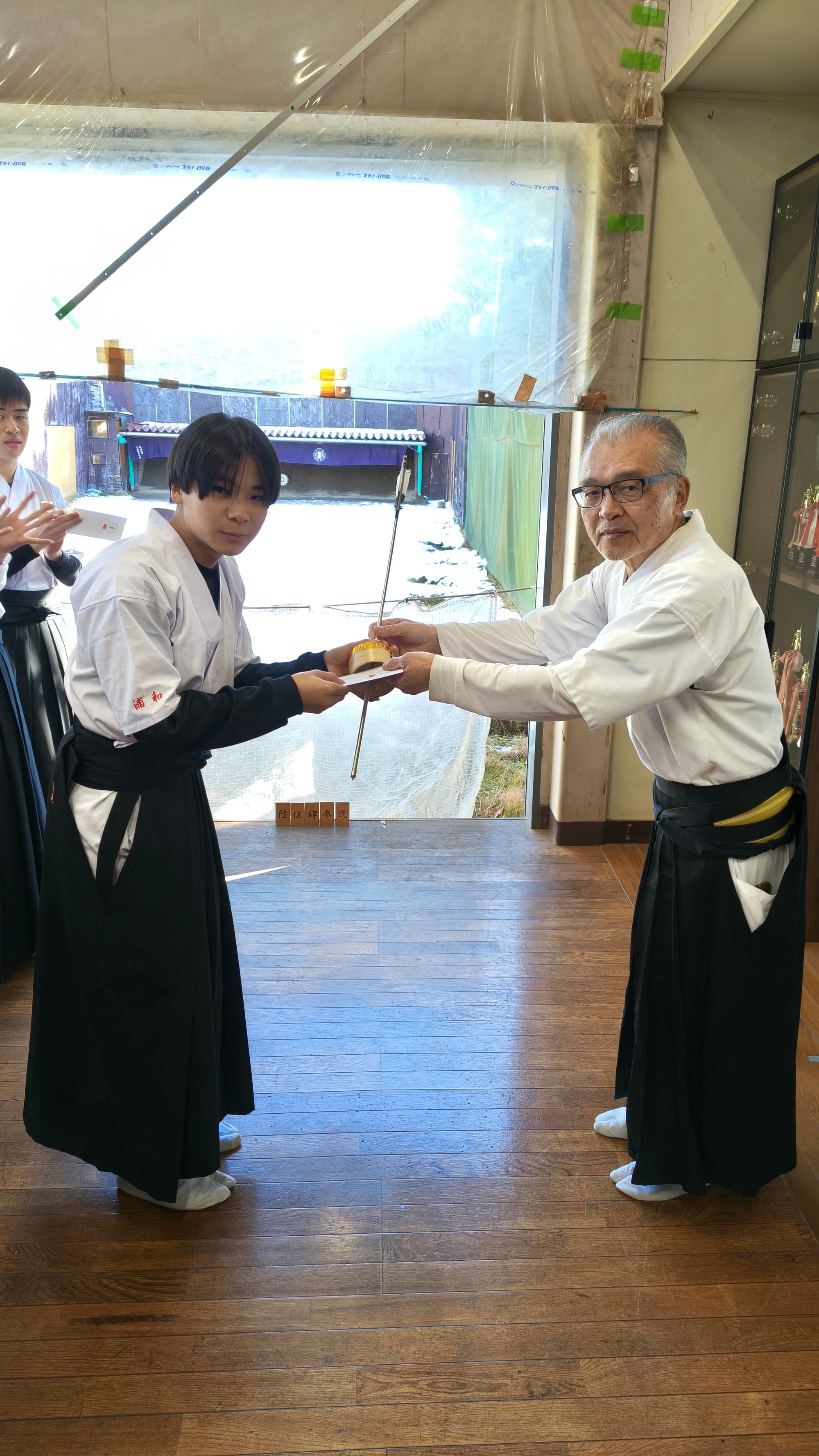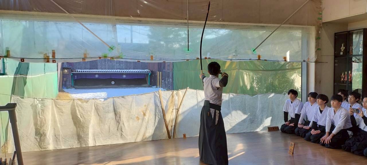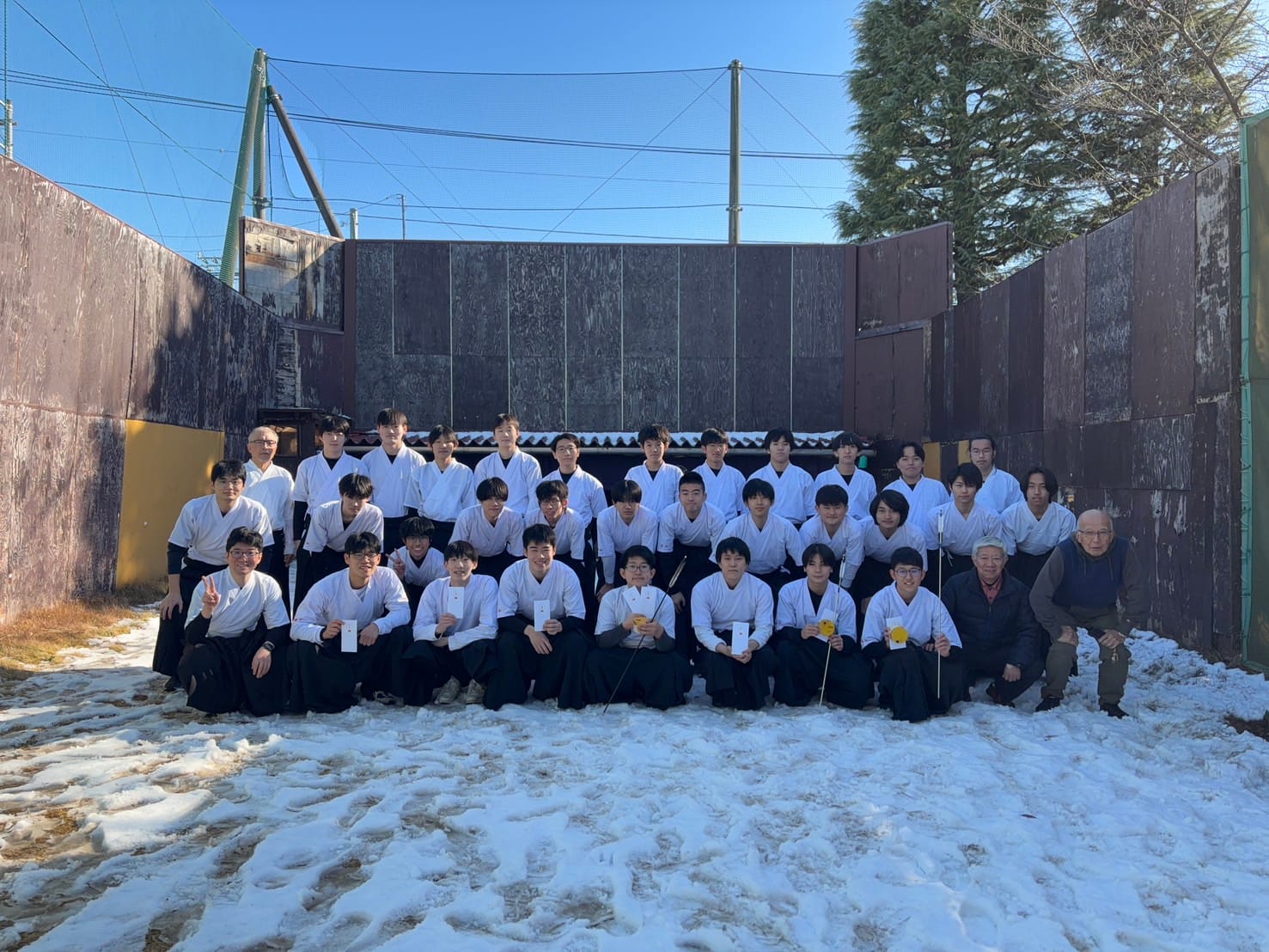 2026年1/4(日)新年射会 開会式森会長矢渡し部長・並木くん(79期)射会の様子1位競射表彰式1位8中の仲丸くん(79期)2位8中の喜田くん(79期)3位8中の酒井幹事(67期)4位6中の石井くん(79期)5位6中の張田くん(79期)金的天・仲丸くん(79期)地・荻野くん(80期)人・須田くん(80期)納射的中1位仲丸くん(79期)閉会式的中一覧集合写真
