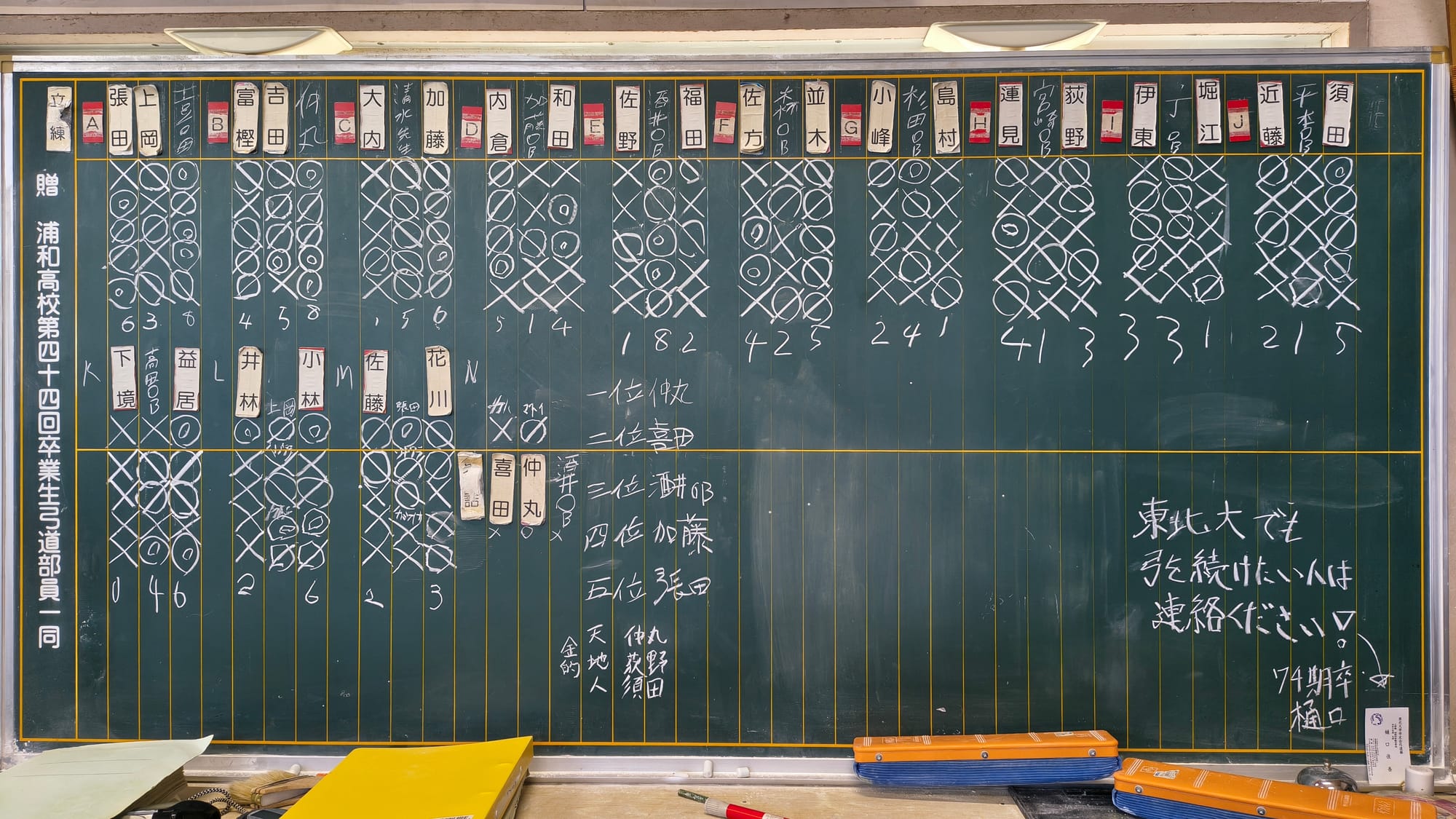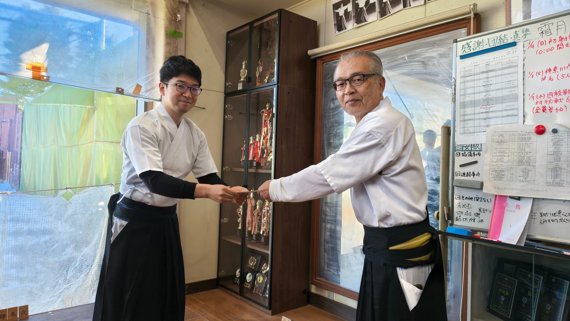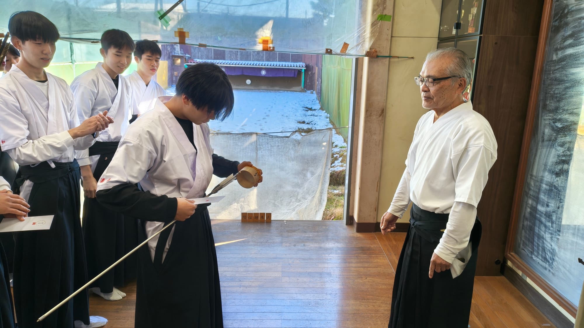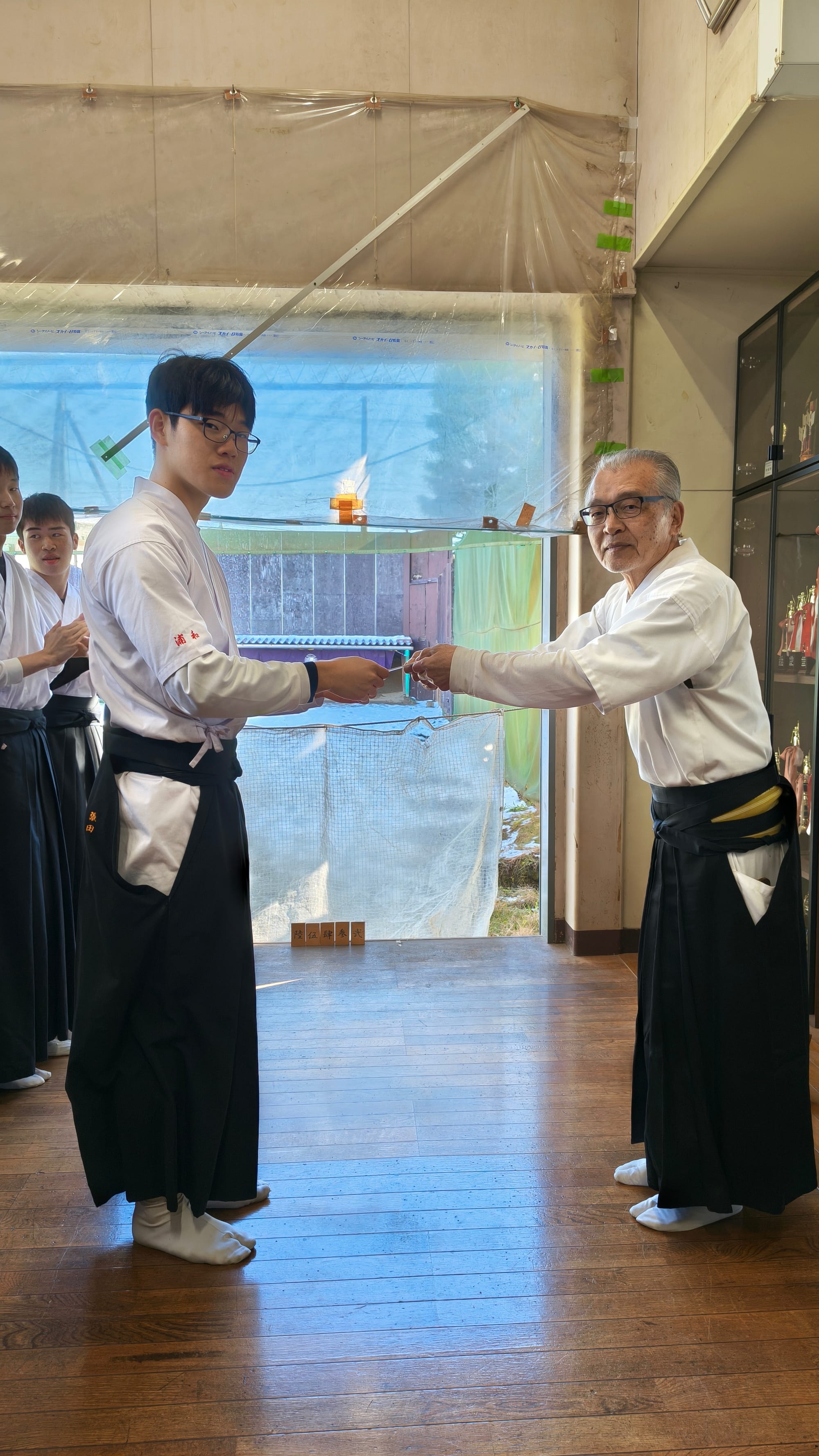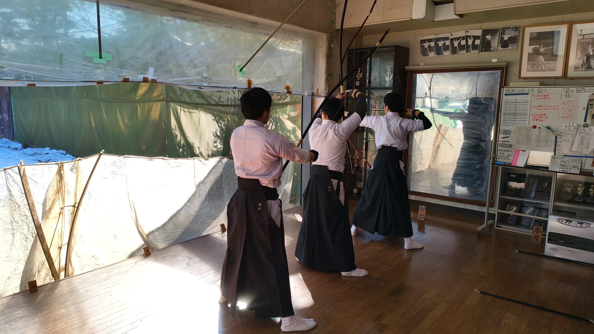 2026年1/4(日)新年射会 開会式森会長矢渡し部長・並木くん(79期)射会の様子1位競射表彰式1位8中の仲丸くん(79期)2位8中の喜田くん(79期)3位8中の酒井幹事(67期)4位6中の石井くん(79期)5位6中の張田くん(79期)金的天・仲丸くん(79期)地・荻野くん(80期)人・須田くん(80期)納射的中1位仲丸くん(79期)閉会式的中一覧集合写真