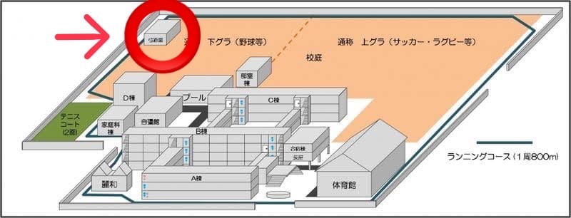 弓道場は浦和高校の下グラの北宿通り沿いに位置しています。